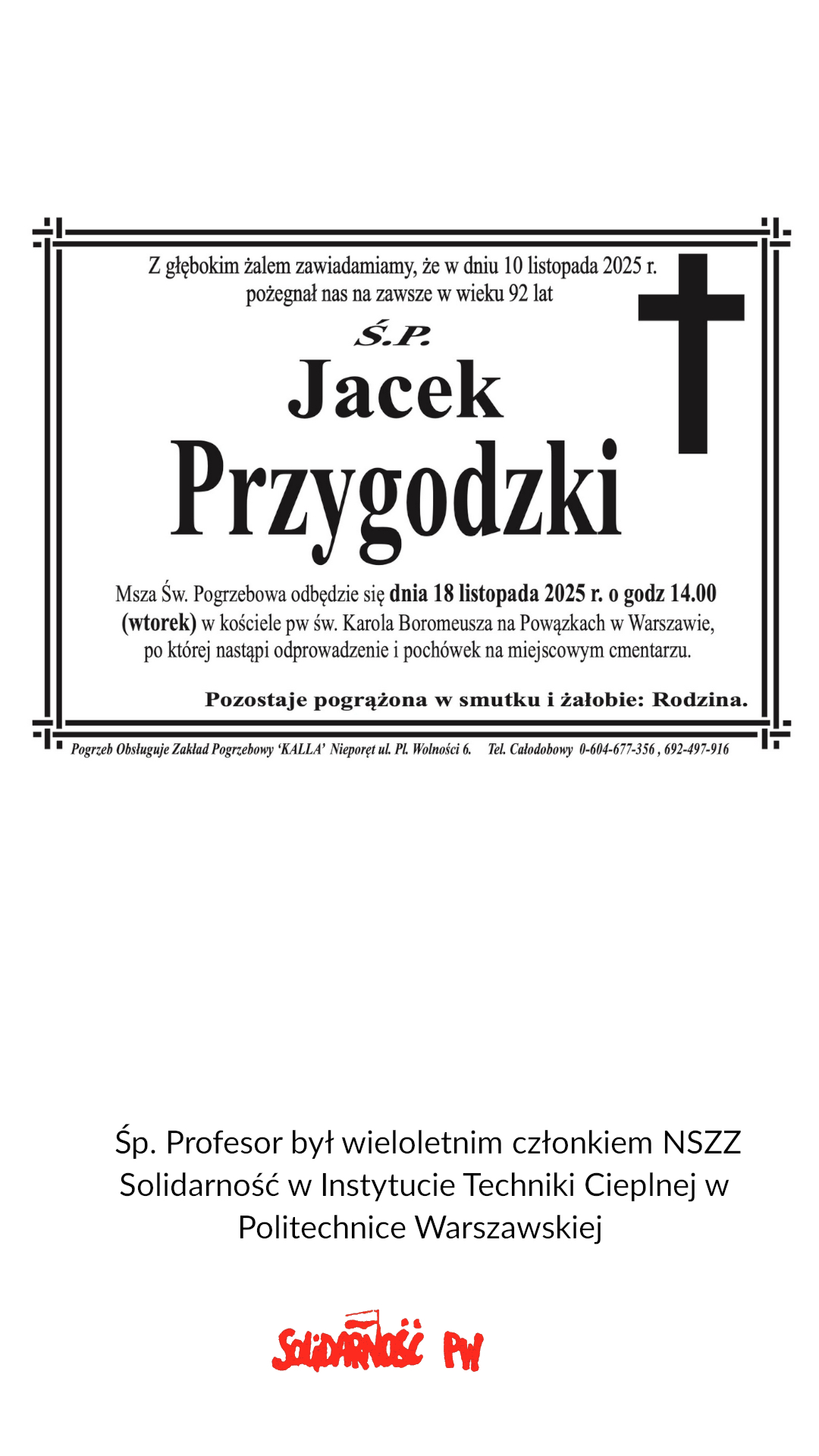 Informacja o pogrzebie prof. Jacka Przygodzkiego